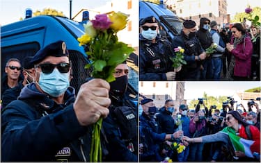 Roma, manifestazione No Green Pass: donne regalano rose ai poliziotti. FOTO