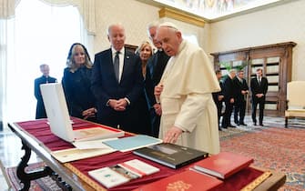 Successivamente il presidente degli States si è recato in Vaticano. All'arrivo nel Cortile di San Damaso, Biden, con la first lady Jill, è stato accolto dal Reggente della Casa pontificia, monsignor Leonardo Sapienza. Poi l'incontro col Papa nella Biblioteca apostolica