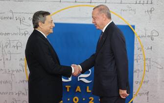 Il presidente turco Recep Tayyip Erdogan è arrivato al G20. Si è trattato della prima stretta di mano tra i due leader dopo le tensioni seguite alle dichiarazioni di Draghi, che nello scorso aprile definì il presidente turco "un dittatore". Tra i due c'era stato un colloquio telefonico