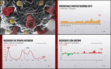 Sale il numero dei pazienti nei reparti ordinari (3.215, +42) e quello delle persone in rianimazione (398, +6). Scende leggermente la percentuale di positivi sui tamponi fatti (ieri 1,4%). Il bollettino del 7 novembre segnala 5.822 nuovi casi rilevati su 434.771 test giornalieri