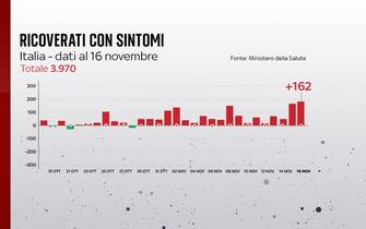 Secondo il bollettino del 16 novembre, sale il numero di pazienti positivi negli ospedali: in rianimazione ci sono 481 persone (+6) e negli altri reparti 3.970 (+162). La percentuale di positivi sui tamponi fatti si dimezza da ieri. In Italia, nelle ultime 24 ore, sono stati registrati 7.698 nuovi casi di coronavirus, su 684.710 tamponi