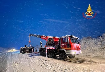 Sul posto sono arrivati i Vigili del fuoco di Nuoro, i Carabinieri e gli uomini dell'Anas. Un analogo incidente con un camion in mezzo alla strada si segnala all'uscita nord di Macomer dove sono arrivate due squadre dei Vigili del Fuoco di Macomer e Oristano (in foto Esterzili)