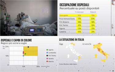 Per quanto riguarda l’occupazione degli ospedali, le soglie fissate per il passaggio alla zona gialla sono del 10% in terapia intensiva e del 15% nei reparti ordinari. Friuli Venezia Giulia, PA di Bolzano e Calabria sono già in questa fascia di rischio, ma i parametri sono superati anche da PA di Trento e Liguria, che si avviano quindi al cambio di colore