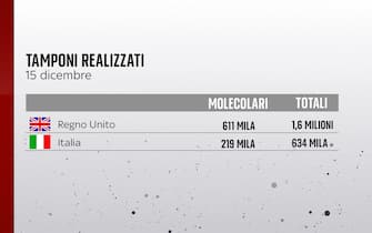 Il 15 dicembre, i tamponi analizzati in Italia sono stati 634mila mentre nel Regno Unito sono stati 1,6 milioni