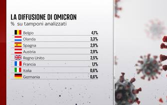 Con i 529 casi registrati tra il 15-16 dicembre, nell'Unione europea sono stati superati i 3mila casi ufficiali di infezioni da variante Omicron. Anche nel Regno Unito i casi legati a questa variante sono ancora aumentati: 1.691 il 16 dicembre, per un totale di 11.708. Il Belgio ha la percentuale più alta di diffusione sui tamponi analizzati: è al 4,1%, mentre il Regno Unito è al 2,5% e l'Italia allo 0,6%