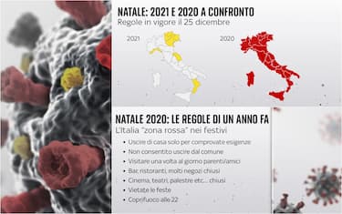 Lo scorso anno l’aumento dei contagi e la mancanza dei vaccini portò l’allora governo Conte a varare una serie di misure di contenimento drastiche. Nei giorni festivi tutte le regioni erano inserite di default nella fascia di rischio più alta. Ora invece gran parte del Paese passerà il 25 dicembre in zona bianca e solo alcuni territori saranno in giallo, con regole quindi molto diverse da un anno fa