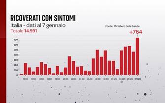 In Italia le persone ricoverate con sintomi da Covid-19 continuano ad aumentare: sono 14.591, +764 rispetto al giorno prima