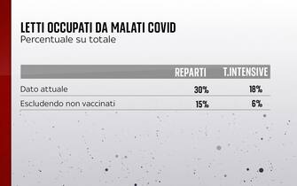 I letti occupati da malati Covid negli ospedali italiani e la situazione escludendo i non vaccinati