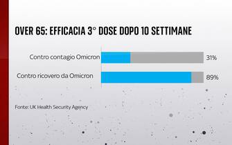 Per gli over 65, l’efficacia della terza dose dopo 10 settimane è all’89% contro il ricovero da Omicron