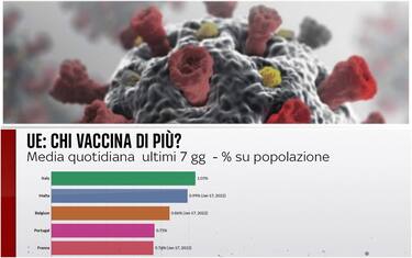 Considerando la media quotidiana degli ultimi 7 giorni, l’Italia è al primo posto nell’Unione Europea. Nel nostro Paese, lo scorso 18 gennaio i nuovi vaccinati sono stati oltre 57mila. Tra gli over 12, sono 5,4 milioni le persone che non hanno ricevuto nessuna dose. E ci sono 700mila over 80 a rischio perché non vaccinati o scoperti