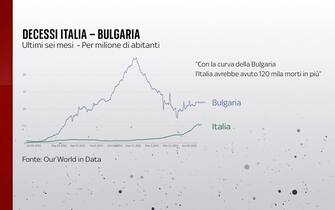 Il confronto dei decessi tra la Bulgaria, che ha il 29% di popolazione vaccinata, e l’Italia, che ne ha l’83%