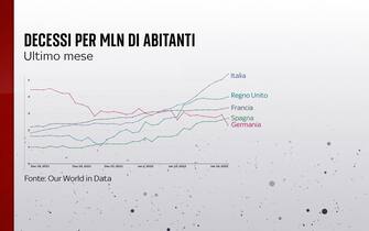 I decessi nell'ultimo mese per milione di abitanti nei diversi Paesi