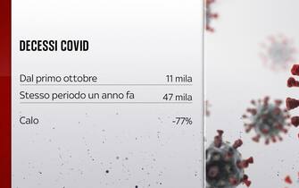 I decessi Covid, rispetto allo stesso periodo di un anno fa, sono in calo del 77%