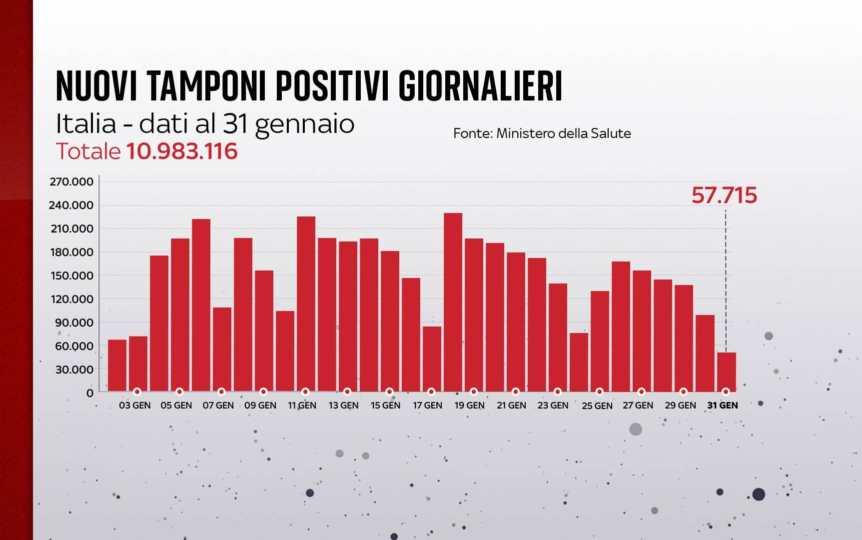 Coronavirus in Italia, il bollettino del 31 gennaio: 57.715 nuovi casi, i morti sono 349