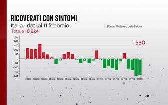 In calo, per il quarto giorno consecutivo, i ricoverati con sintomi: sono 16.824, cioè 530 in meno del 10 febbraio