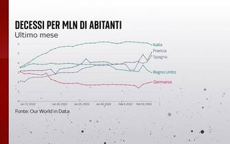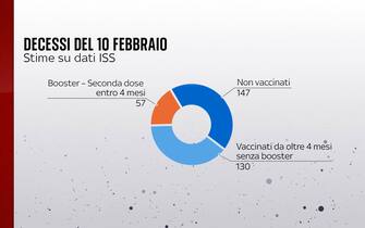 Nella grafica: i decessi del 10 febbraio, fra vaccinati e non vaccinati
