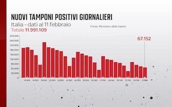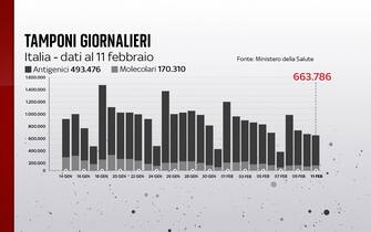 Intanto i nuovi tamponi positivi giornalieri sono 67.152, secondo i dati del bollettino del ministero della Salute dell'11 febbraio