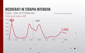 Diminuiscono ancora i pazienti positivi al Covid-19 in terapia intensiva: sono 1.265, cioè 57 in meno del giorno prima
