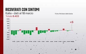 I ricoverati con sintomi sono 8.403, in crescita di 6 unità rispetto al 17 marzo