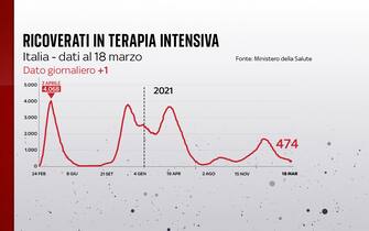 Le persone in terapia intensiva positive al Covid-19 sono 474, cioè una in più rispetto al giorno prima