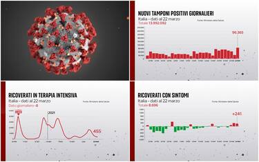 Sono 96.365 i nuovi contagi Covid registrati in Italia dal ministero della Salute nel bollettino del 22 marzo. I casi totali da inizio pandemia sono 13.992.092