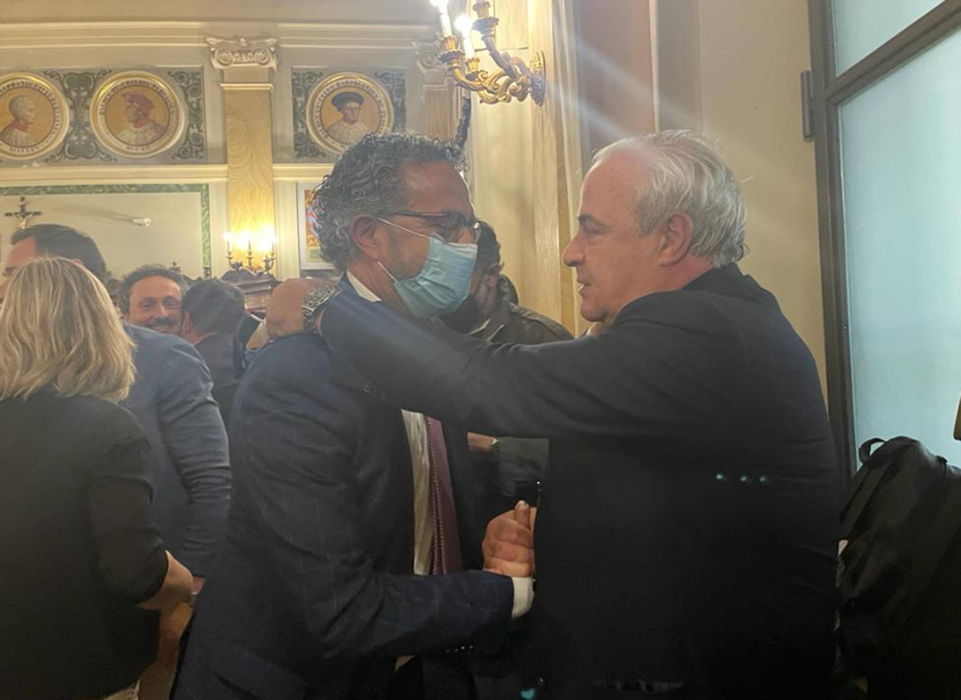 L'abbraccio tra Renato Cortese e Maurizio Improta dopo l'assoluzione - ©Ansa