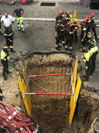 L'uomo rimasto bloccato si trovava a circa metà della carreggiata ad una profondità di circa sei metri
