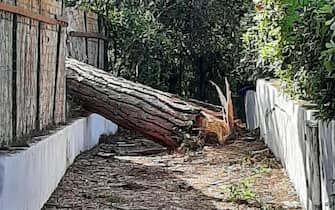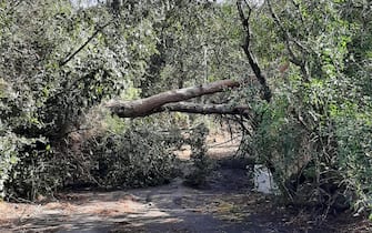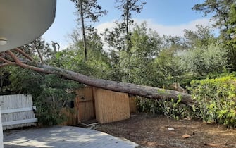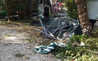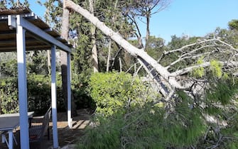 Chiusi tratti dell'Appia e della Pontina, nel Lazio, a causa degli alberi caduti. Danni nella zona del campeggio Rio Martino di Borgo Grappa, vicino Sabaudia (Latina)