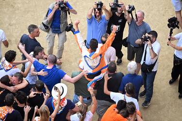 La contrada del Leocorno con Giovanni Atzeni vince il Palio di Siena dell'Assunta. FOTO