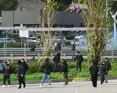 Ieri lungo l'Autostrada del Sole, si è assistito a una vera e propria battaglia con protagonisti ultras del Napoli e della Roma in trasferta al nord, i primi a Genova, i secondi a Milano. Centinaia le persone coinvolte, il traffico dell'A1 bloccato verso nord per 50 minuti, l'area di servizio di Badia al Pino, vicino ad Arezzo, teatro di una guerriglia che ha ricordato l'11 novembre 2007 quando morì il supporter della Lazio Gabriele Sandri, ucciso dall'agente Luigi Spaccarotella. Nella guerriglia di ieri è rimasto ferito un tifoso romanista che, in serata, ha fatto sapere la Questura di Arezzo, è stato arrestato per rissa aggravata. L'incontro tra gli ultras non sembra essere stato affatto casuale: c'è l'ipotesi che le due tifoserie si fossero date appuntamento, per antichi contrasti e ruggini. Una sorta di resa dei conti per l'odio che risale alla tragica morte del supporter napoletano Ciro Esposito, nel 2014 a Tor di Quinto, per mano di un ultrà romanista. Gli scontri hanno avuto inizio dopo le 13:30. Nella nota diffusa dalla questura si spiega che erano circa 350 i tifosi del Napoli che si sono fermati all'autogrill raggiunto con più veicoli. Poi sono transitati i tifosi della Roma, "molto probabilmente avvisati della presenza dei napoletani -precisa la Questura nella ricostruzione - hanno rallentato la marcia fino a fermarsi all'altezza dell'area di sosta mentre una parte della tifoseria del Napoli ha iniziato un fitto lancio di oggetti verso le autovetture sulla carreggiata". Attimi ripresi da alcuni video in rete: gruppi di tifosi, vestiti di nero e travisati, si aggirano armati di bastoni nell'area di servizio e lanciano petardi e sassi contro le auto. "Entrambi i gruppi in brevi attimi si sono spostati all'altezza dell'uscita dell'autogrill e sono entrati in contatto per pochi minuti", ricostruisce ancora la Questura. La polizia decide di bloccare dunque l'A1, per scongiurare altri rischi derivati dal passaggio di altri romanisti e anche per tutelare l'incolumità degli automobilisti. Il tratto autostradale resta bloccato per 50 minuti e a Badia al Pino viene fatto confluire anche il personale di polizia che era nella vicina area di servizio Arno. Nell'autogrill si vivono anche momenti di paura anche se, fortunatamente, il bilancio è di un solo tifoso ferito, il romanista raggiunto da un'arma da taglio, poi arrestato. La polizia riesce poi ad allontanare le due tifoserie: i tifosi romanisti, ricostruisce ancora la Questura, "dopo circa 15 minuti sono ripartiti, mentre quelli napoletani sono rimasti nell'area di servizio e successivamente scortati fino a Genova da personale delle forze di polizia".