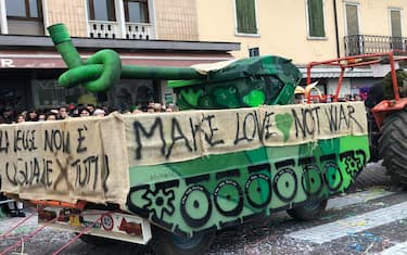 Carnevale, presente “Cospito libero” durante parata. Maschere fermate