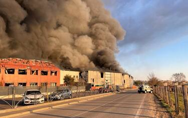 Il rogo si è sviluppato all'interno della Forl Lift. La colonna di fumo visibile a chilometri di distanza. Appello del sindaco ai residenti: "Chiudete le finestre e non svolgente attività all'aperto nella zona"
