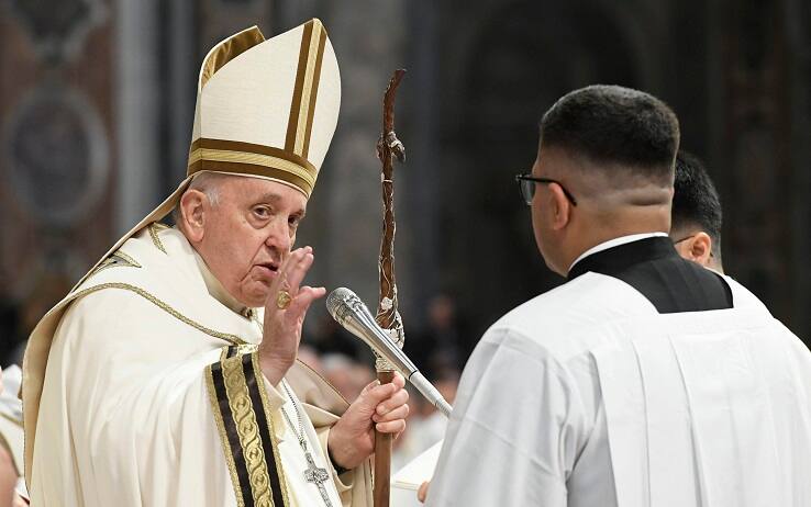"È il tempo, per noi come per gli Apostoli, di una "seconda unzione", dove accogliere lo Spirito non sull'entusiasmo dei nostri sogni, ma sulla fragilità della nostra realtà - ha ha detto Papa Francesco nella Messa del Crisma -. È un orizzonte che fa verità nel profondo, che permette allo Spirito di ungerci le debolezze, le fatiche, le povertà interiori. Allora l'unzione profuma nuovamente: di Lui, non di noi". Il pontefice ha poi aggiunto: "Sto facendo memoria di alcuni di voi che sono in crisi, che sono disorientati e non sanno come riprendere la strada. Questi fratelli li ho presenti, e semplicemente dico loro coraggio, il Signore è più grande delle tue debolezze e dei peccati, e lasciati chiamare una seconda volta".