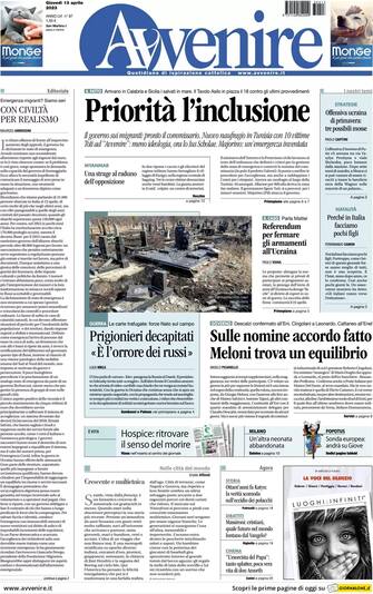 Avvenire: "Priorità inclusione", è il titolo di apertura. Spazio anche alle nomine con il titolo: "Sulle nomine accordo fatto. Meloni trova un equilibrio"