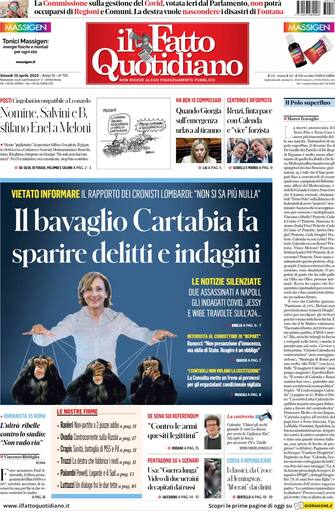 Il Fatto Quotidiano: apertura con titolo "Il bavaglio Cartabia fa sparire delitti e indagini". Vietato informare: il rapporto dei cronisti lombardi "Non si sa più nulla"