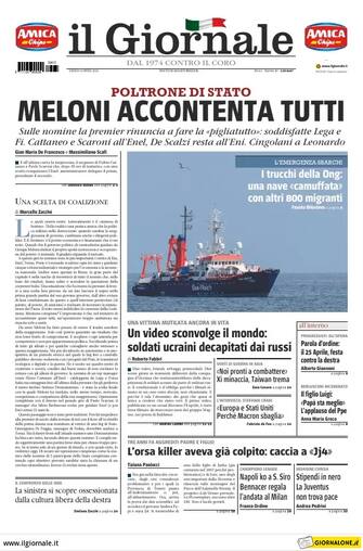 Il Giornale: apertura con titolo "Poltrone di Stato: Meloni accontenta tutti". Spazio anche a "I trucchi dell'Ong, una nave camuffata con altri 800 migranti"