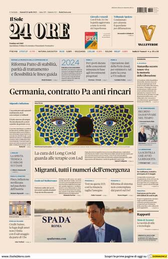 Il Sole 24 Ore: apertura con titolo "Germania, contratto Pa anti rincari". Spazio a "Migranti, tutti i numeri dell'emergenza" e "Riforma patto di stabilità, parità di trattamento e flessibilità: le linee guida"