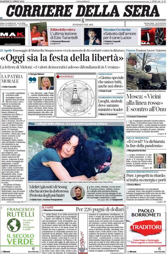 Corriere della Sera: apertura con titolo "Oggi sia la festa della libertà". 25 aprile: il messaggio di Mattarella: bisogna tenere viva la memoria di chi combattè contro la dittatura. Spazio all'omicidio della psichiatra a Pisa: "I deliri (già noti) di Seung che ha ucciso la dottoressa. Protesta degli psichiatri"