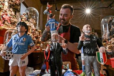 Domenica potrebbe essere il giorno giusto. Dopo la decisione di spostare la gara contro la Salernitana, il Napoli, in caso di stop della Lazio a San Siro impegnata contro l'Inter alle 12.30, potrebbe festeggiare il terzo scudetto della sua storia. Per l'occasione l'artigiano di San Gregorio Amreno Genny Di Virgilio (in foto) ha creato delle statuine con i giocatori della rosa di Luciano Spalletti
