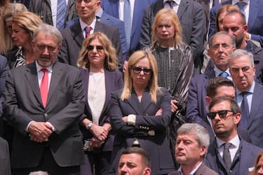 Si commuove e commuove la premier Giorgia Meloni ai funerali del senatore di Fratelli d'Italia Andrea Augello, scomparso il 28 aprile scorso all'età di 62 anni, che ha voluto che fosse proprio lei, insieme all’avversario politico di una vita, Goffredo Bettini, a ricordarlo nel giorno del suo funerale