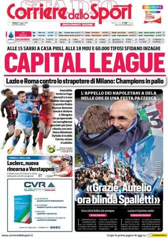Corriere dello Sport: Apertura con titolo "Capital League". Lazio e Roma contro lo strapotere di Milano: Champions in palio