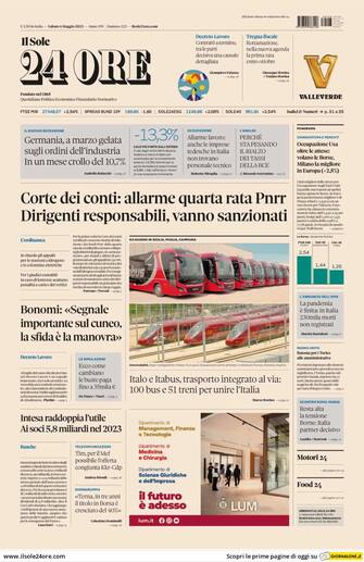 Il Sole 24 Ore: Apertura con titolo "Cortedei conti: allarme quarta rata Pnrr. Dirigenti responsabili, vanno sanzionati"