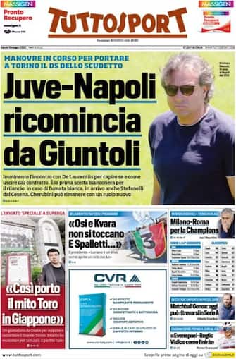 Tuttosport: Apertura con titolo "Juve-Napoli ricomincia da Giuntoli". Imminente l'incontro con De Laurentiis per capire se e come uscire dal contratto. È la prima scelta bianconera per il rilancio: in caso di fumata vianca, in arrivo anche Stefanelli dal Cesena. Cherubini può rimanere con un ruolo nuovo