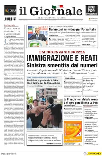 Il Giornale: Apertura con titolo "Berlusconi, un video per Forza Italia". Al via la convention di Milano. Ieri Tajani ha aperto la kermesse. Oggi l'intervento del Cav