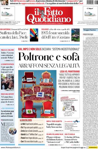 Il Fatto quotidiano: apertura con titolo "Poltrone e sofà arraffoni senza legalità". Rai, Inps e non solo, Zaccaria: "Sistema incostituzionale"
