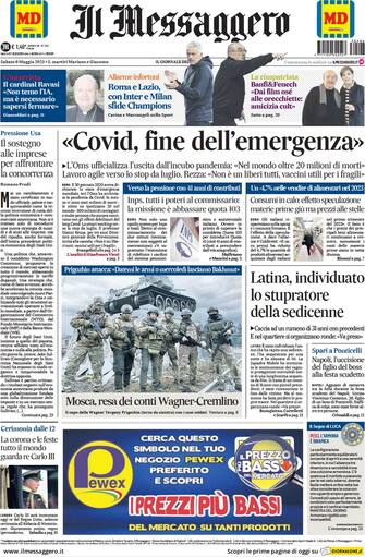 Il Messaggero: apertura con titolo "Covid, fine dell'emergenza". L'Oms ufficializza l'uscita dall'incubo pandemia: "Nel mondo oltre 20 milioni di morti". Lavoro agile verso lo stop da luglio. Rezza: "Non è un liberi tutti, vaccini utili per i fragili"