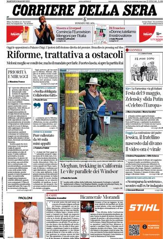 Corriere della Sera: apertura con titolo "Riforme, trattativa a ostacoli". Meloni: meglio se condivise, ma ho il mandato per farle. Fuortes lascia, si apre la partita Rai