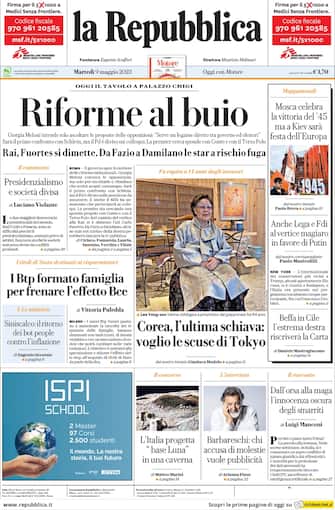 La Repubblica: apertura con titolo "Riforme al buio". Giorgia Meloni intende solo ascoltare le proposte delle opposizioni: serve un legame diretto tra governo ed elettori