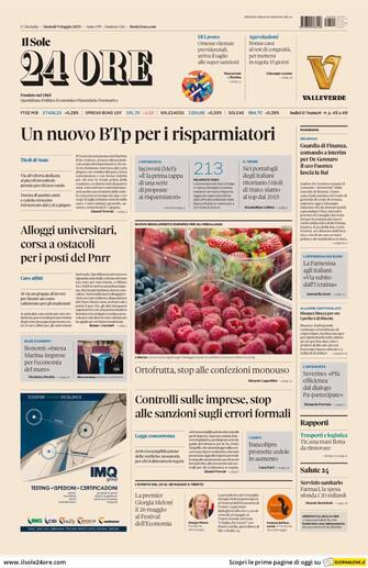 Il Sole 24 Ore: apertura con titolo "Un nuovo Btp per i risparmiatori". Spazio ad "Alloggi universitari, corsa a ostacoli per i posti del Pnrr"