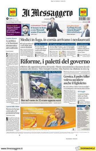 Il Messaggero: apertura con titolo "Riforme, i paletti del governo". Meloni alle opposizioni prima del tavolo: "Niente ostruzionismo o facciamo da soli". Spazio a "Bus nel vuoto, in 32 erano appena scesi"